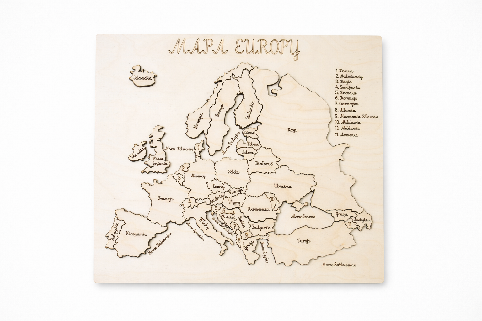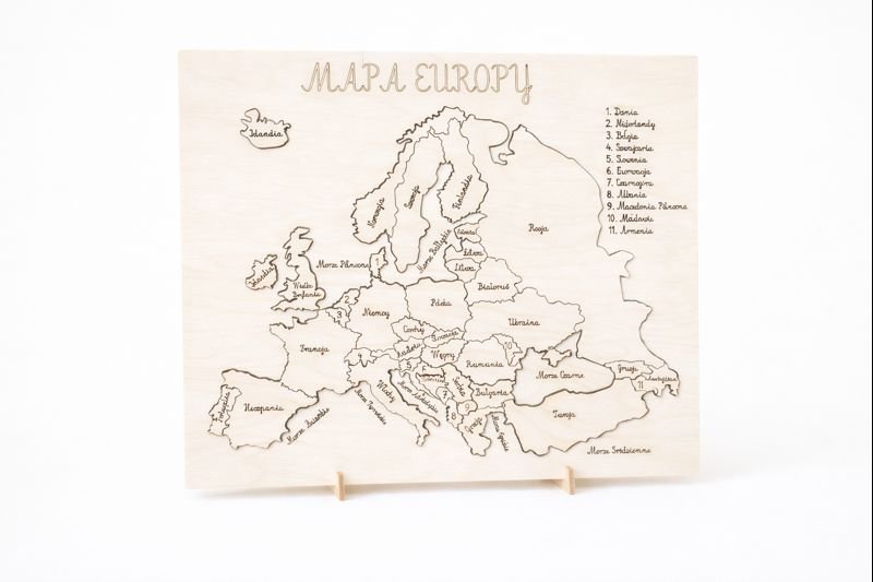 Drewniana mapa Europy to połączenie estetycznego designu, naturalnych materiałów oraz wartości edukacyjnych. Wykonana z wysokiej jakości drewna, precyzyjnie wycinana i starannie wykończona, stanowi wyjątkową ozdobę wnętrza oraz praktyczną pomoc dydaktyczną.