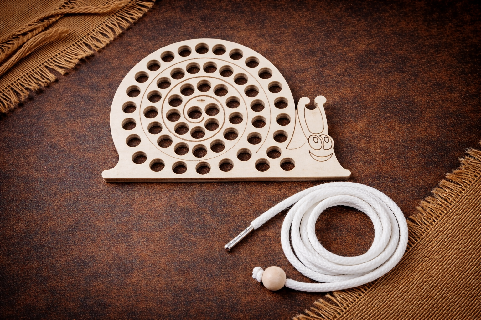 Drewniana przeplatanka Montessori „Ślimak” to prosta, a jednocześnie niezwykle rozwijająca zabawka edukacyjna. Dziecko przeplata sznurek przez otwory w drewnianej tabliczce, ćwicząc precyzję, cierpliwość oraz wyobraźnię. To świetny trening małej motoryki i koordynacji, a także doskonałe przygotowanie do nauki pisania czy wiązania sznurowadeł.