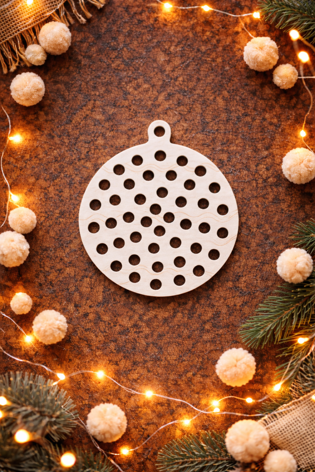 • Drewniana układanka w kształcie bombki na choinkę
