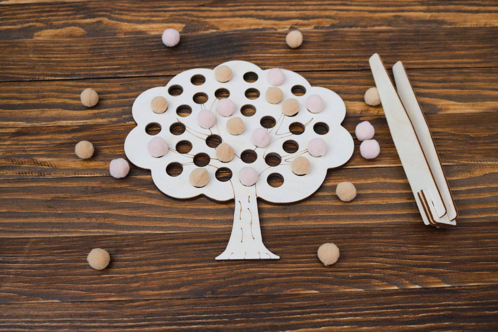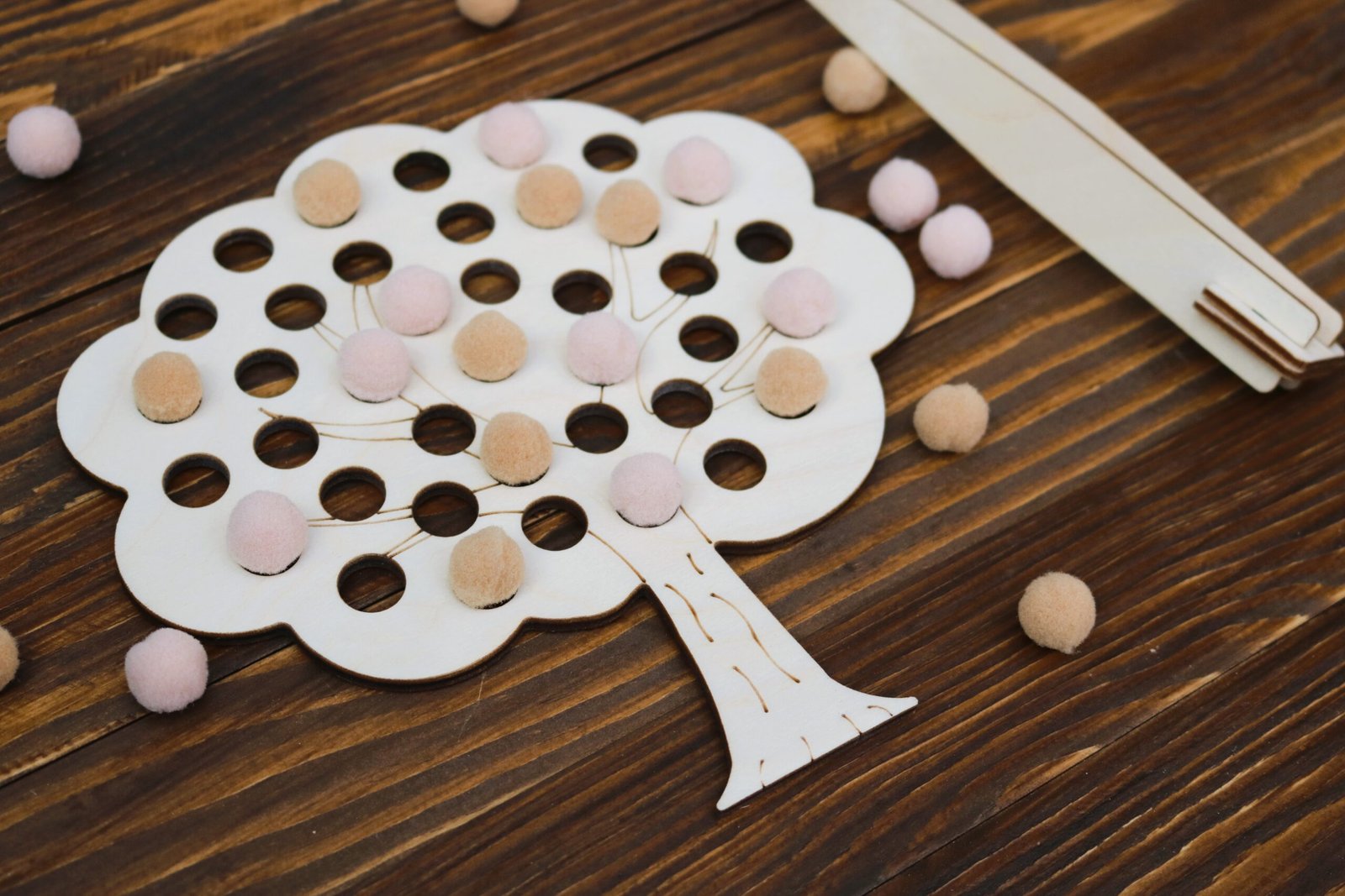 Drewniana układanka Montessori z pomponami Drzewo