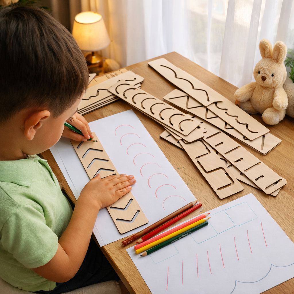Tabliczki grafomotoryczne – nauka pisania to idealna pomoc edukacyjna dla dzieci w wieku przedszkolnym i wczesnoszkolnym. Dzięki specjalnym wzorom i liniom maluch ćwiczy prawidłowe prowadzenie ręki, rozwija koordynację wzrokowo-ruchową oraz przygotowuje się do nauki pisania liter i cyfr.