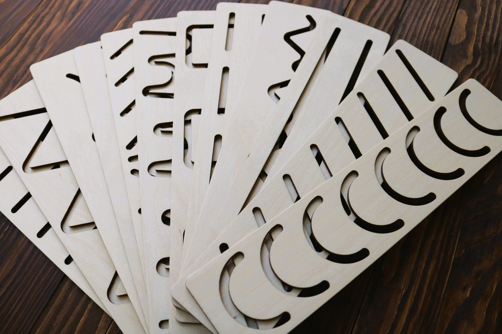 Tabliczki są wykonane z wytrzymałej sklejki brzozowej. Bezpieczne dla dzieci, trwałe i estetyczne.